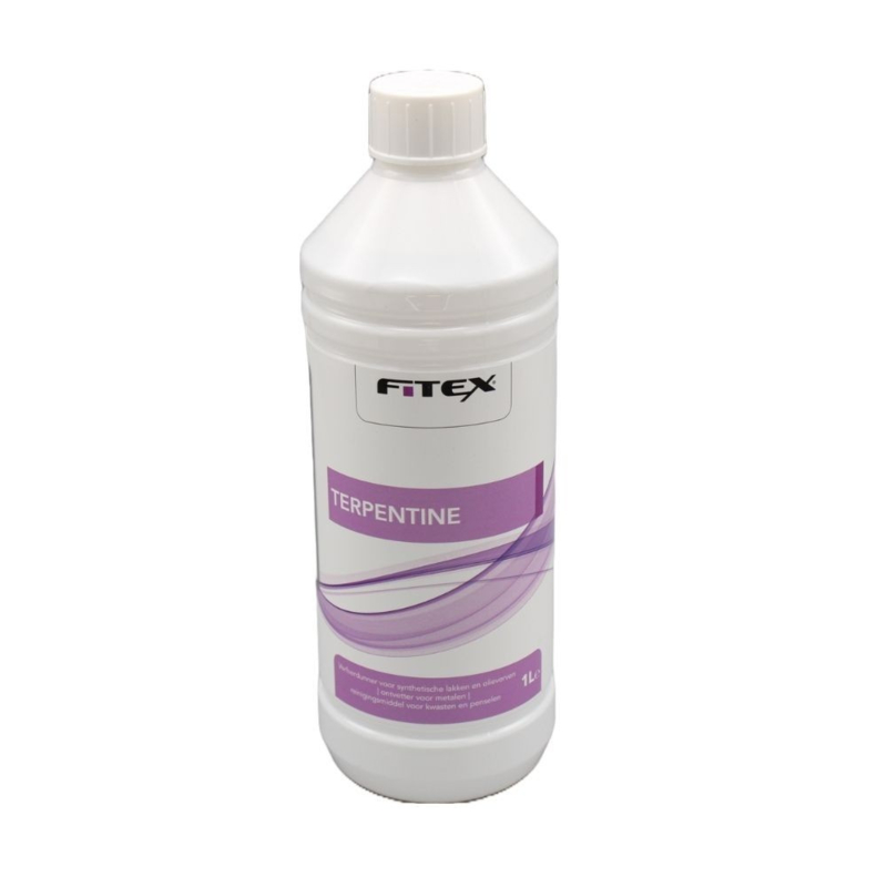 Fitex Terpentine is te gebruiken als verdunning voor oplosmiddel houdende verf. Tevens te gebruiken als reinigingsmiddel voor uw kwasten.